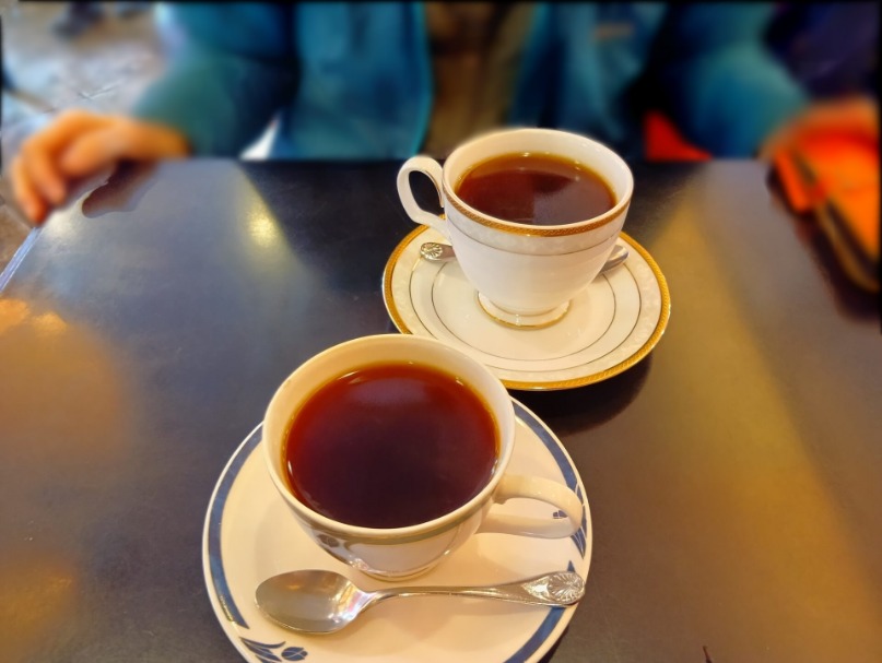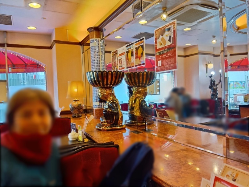 エスカレーターで上がって行けるので、カフェド巴里らしさを入店から楽しめます。