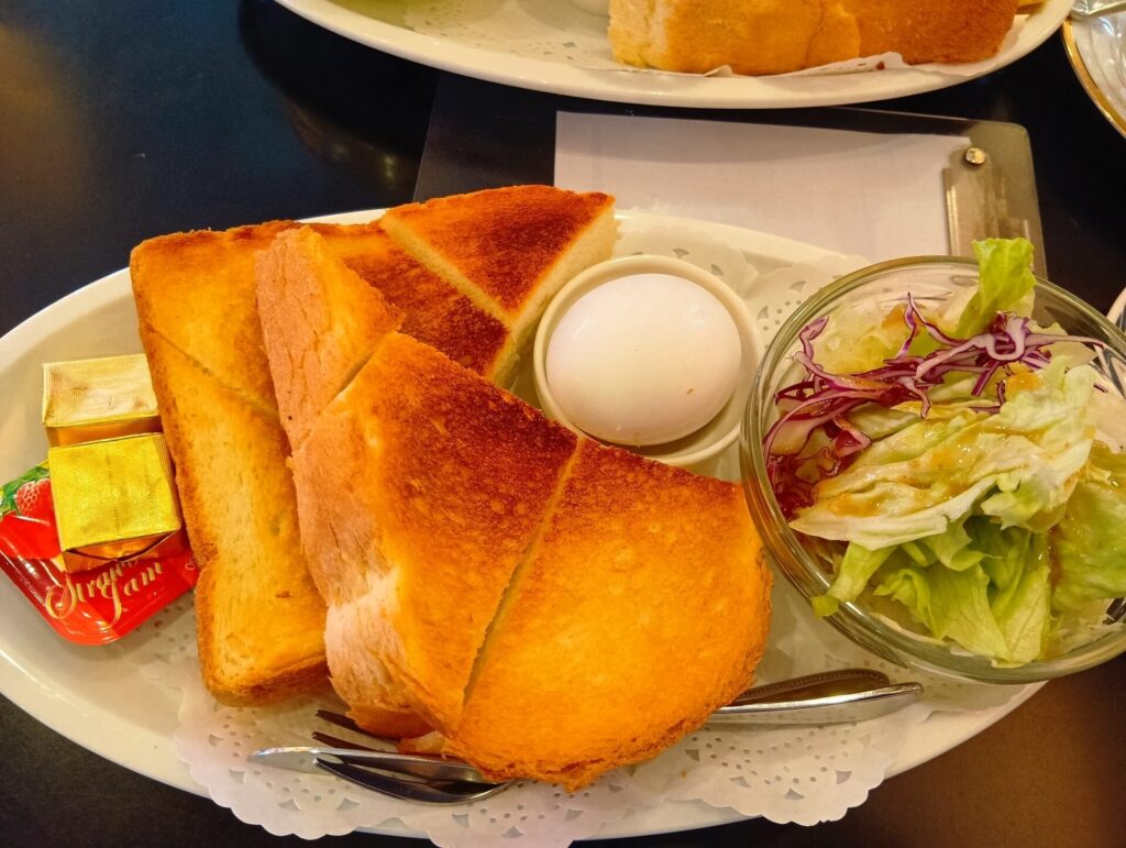 トースト、サラダ、ゆで卵。理想的なモーニングです。