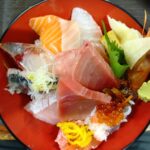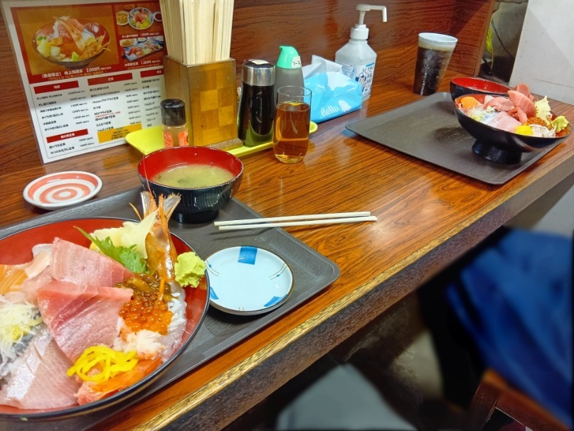 船橋市場の水産棟で新鮮な海鮮を購入した後は海鮮丼で朝ごはんです。