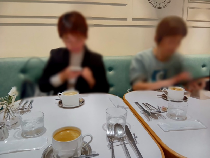新宿ルミネという賑やかな場所にありながら、店内は落ち着いた大人の社交場といった雰囲気。周囲を見渡すと、贅沢に盛り付けられたアフタヌーンティーを楽しむグループや、静かに語らうカップルの姿があり、その光景はまるでパリの街角にあるカフェのよう。
