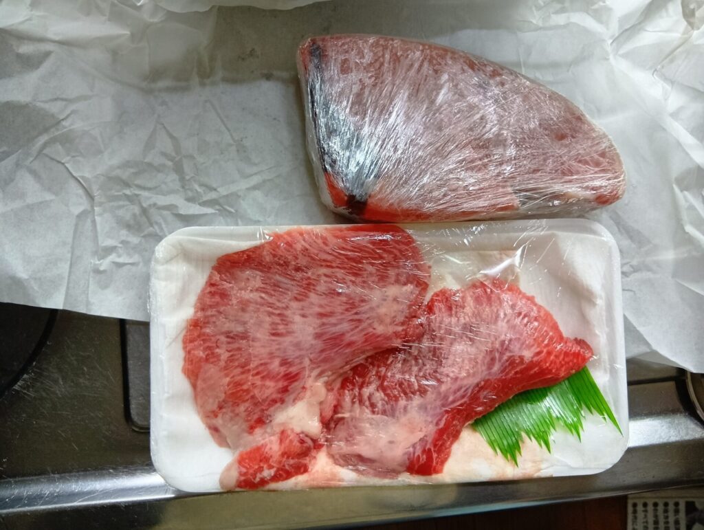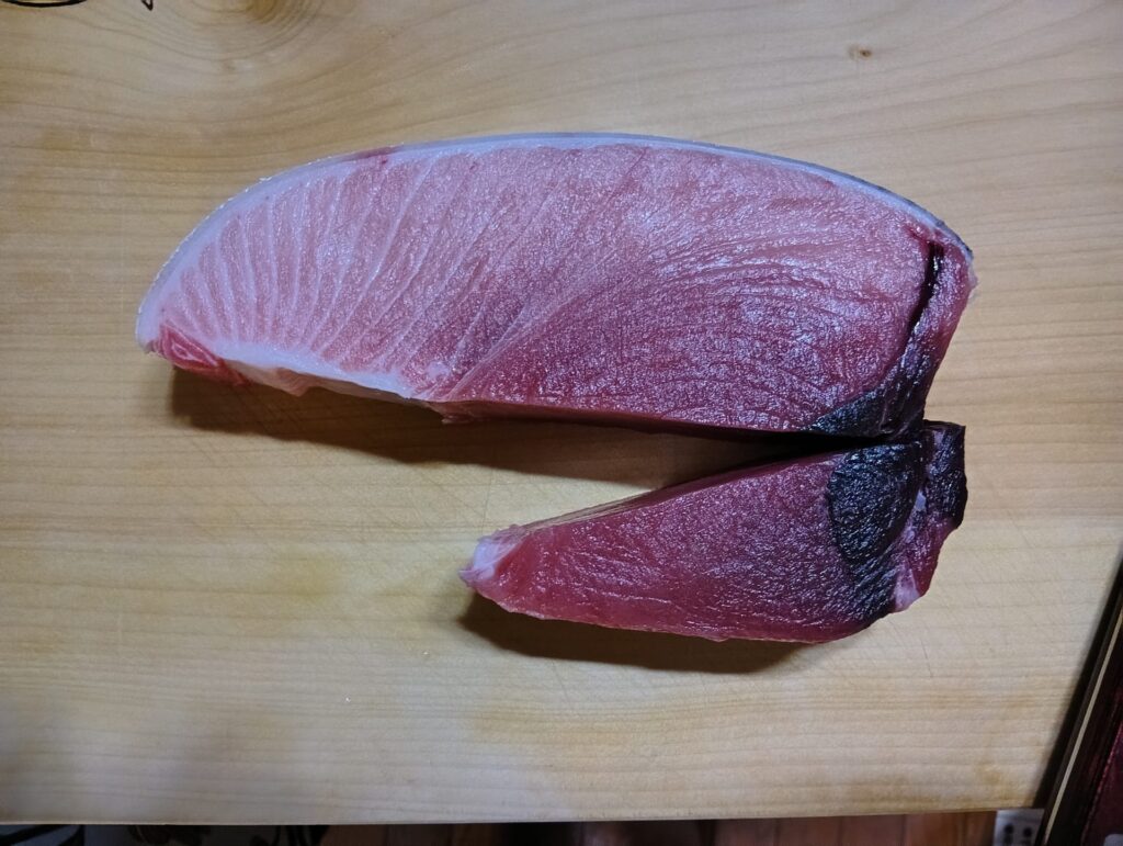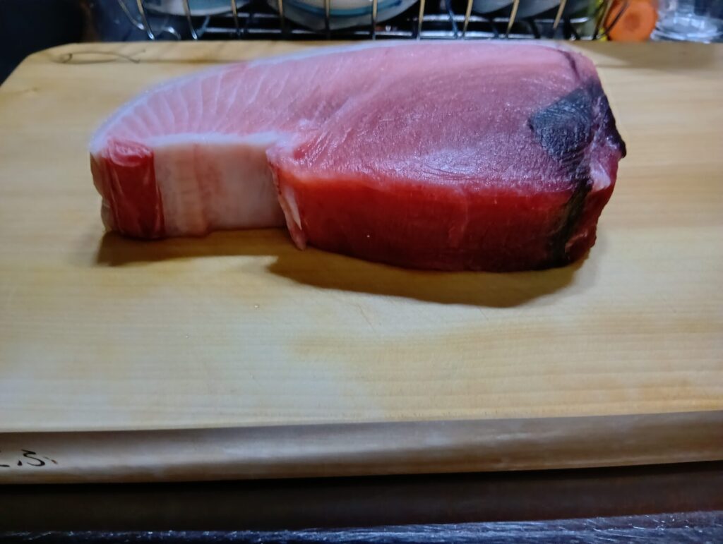 いつもマグロのホホ肉を買うお店で、今回は冷凍マグロのブロックも買ってきました。