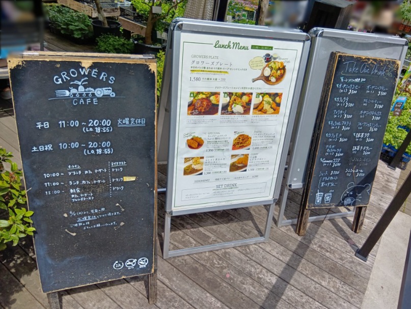 【GROWERS CAFEでの贅沢ランチ】 たっぷり歩いてお腹を空かせたら、併設の「GROWERS CAFE」へ。 ここで、電車とバス移動の特権を最大限に活かします。