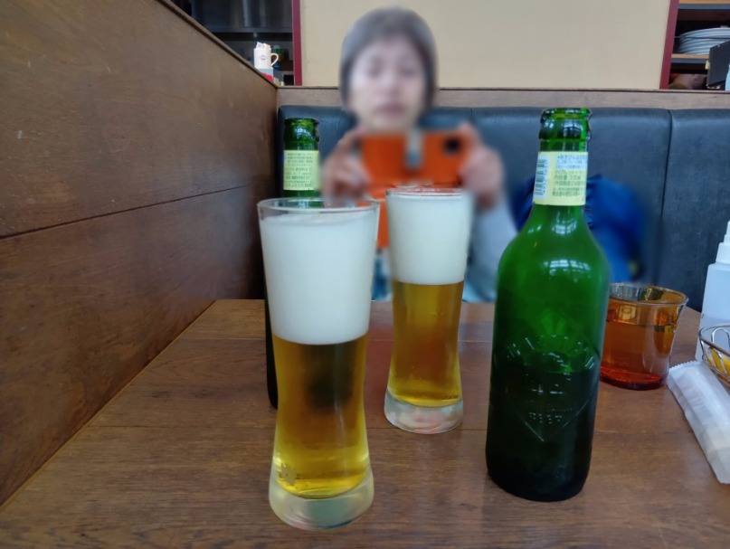注文の第一声は、迷わず**「ハートランド2つ!」**。 昼から味わう冷えたビールは、歩いた身体に染み渡ります。