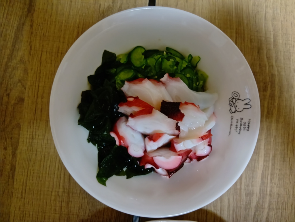 小鉢のオクラ鰹節、味噌汁のワカメの茎も良い感じです。美味しいです。