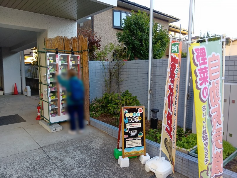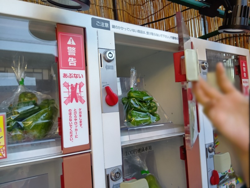 船橋駅から船橋市場に向かう途中にある野菜の自動販売機に商品が入ってました。