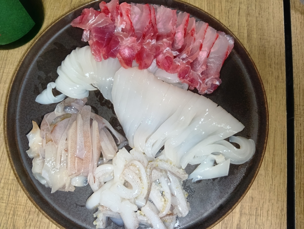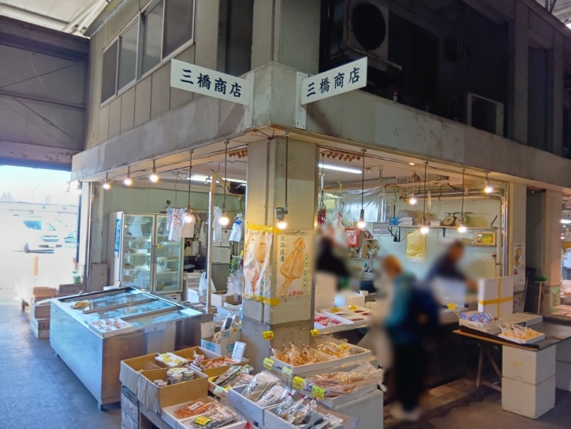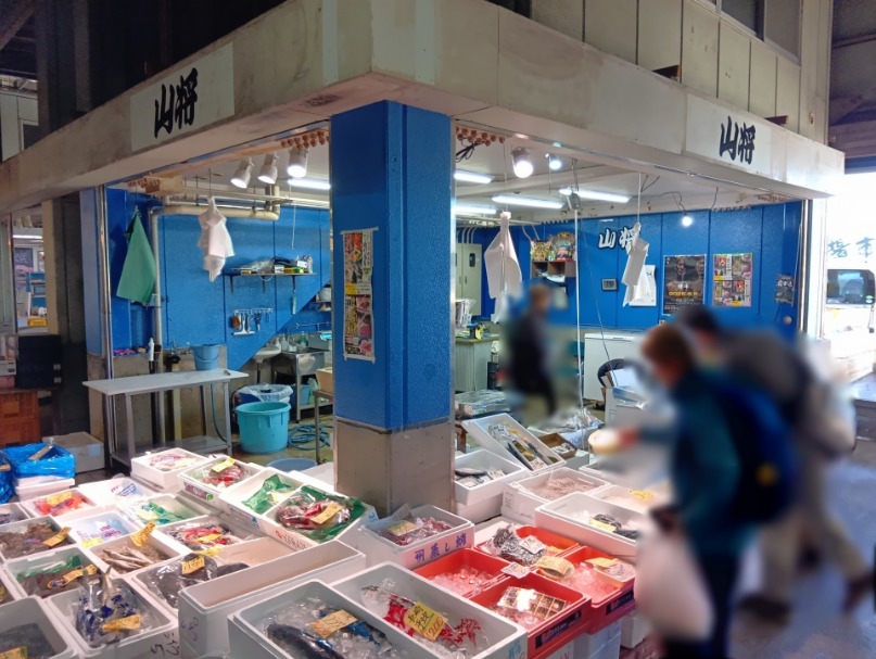 最初に訪れたヤマスエ水産さんで、ピカピカに輝くスルメイカを発見!肉厚で鮮度が抜群。「これはアヒージョにも、お刺身にも最高だぞ…」と即購入を決定。