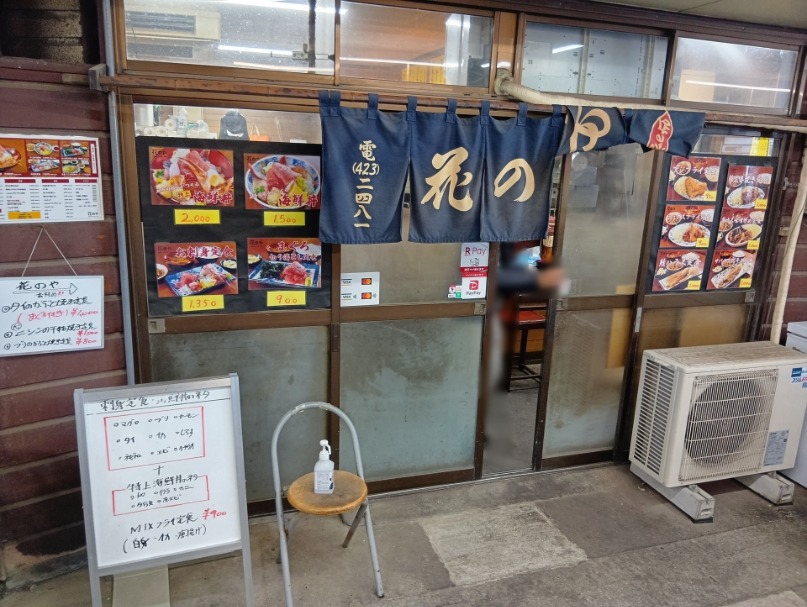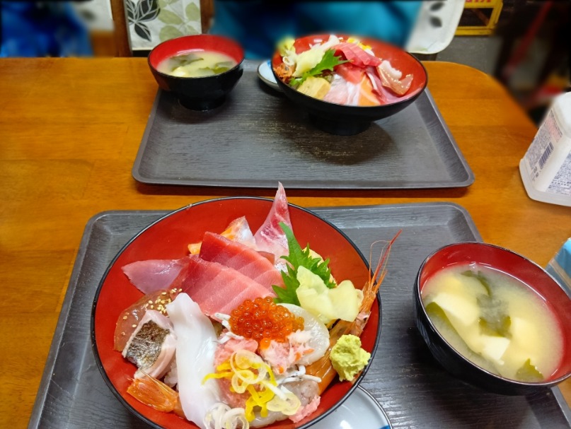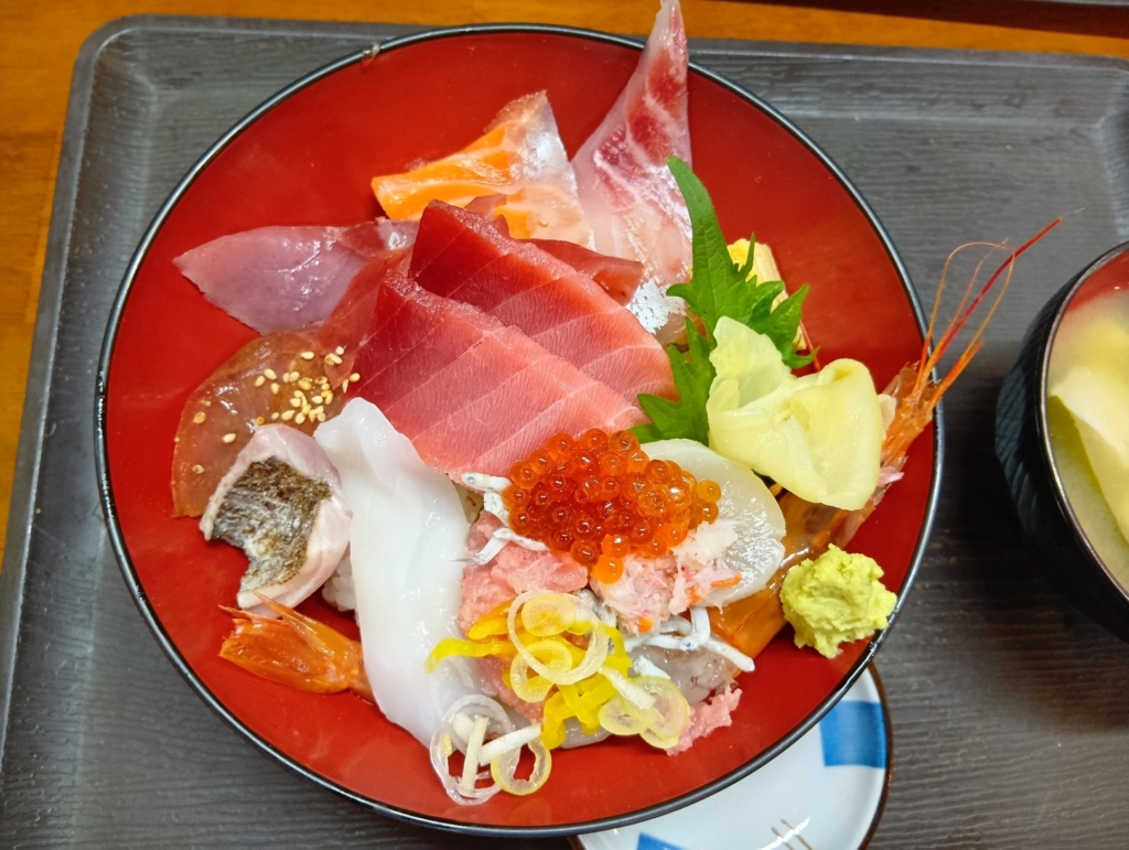 花のやさんの特上海鮮丼の登場です。キラキラと輝くネタの数々、新鮮な魚介がこれでもかと乗せられた丼ぶりは、まさに市場の朝の女王!黒霧で温まった体に、冷たい新鮮な海鮮が染み渡ります。最高の食材を目の前にしていただく朝ごはんは、何にも代えがたい贅沢です。