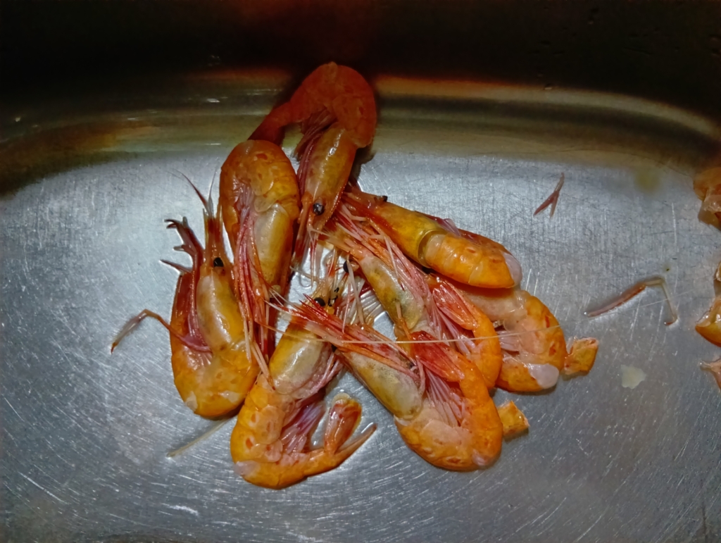 殻を剥いて水気を取ります。プリっぷりしてます。