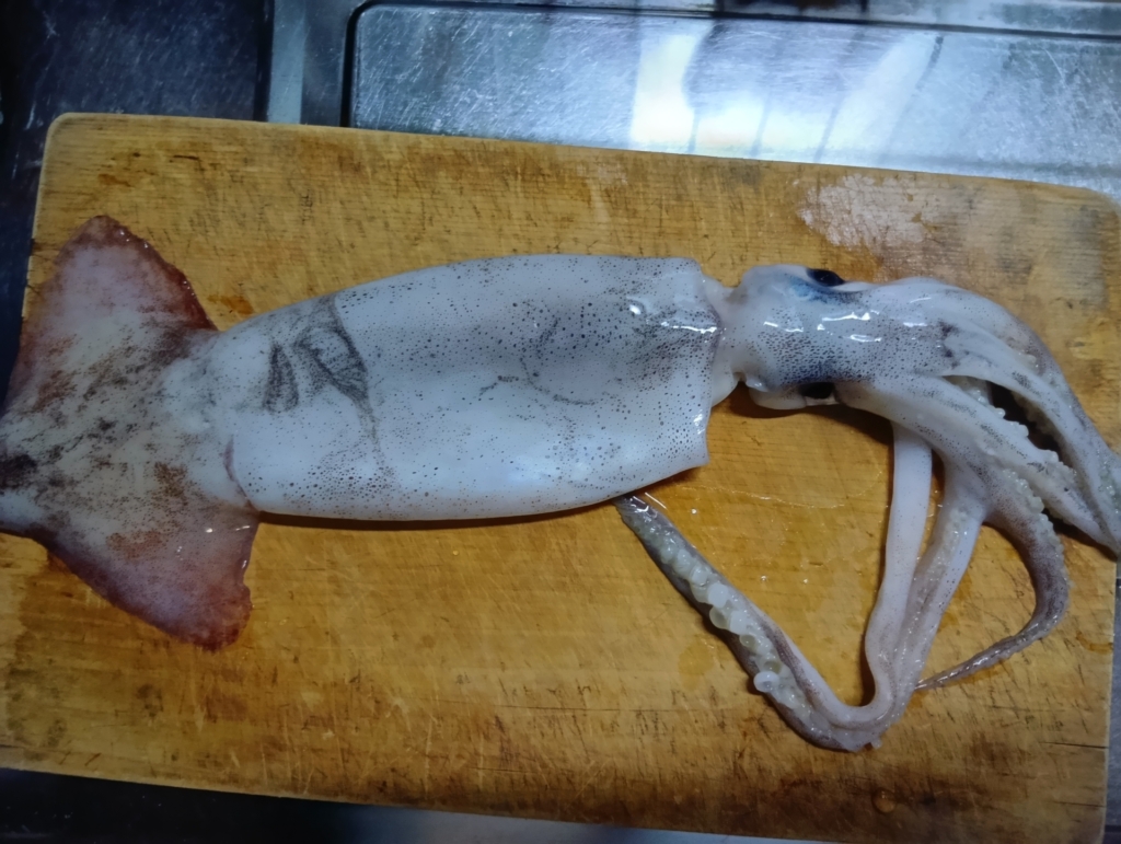海鮮アヒージョの具は船橋市場で買って来た海鮮達です。