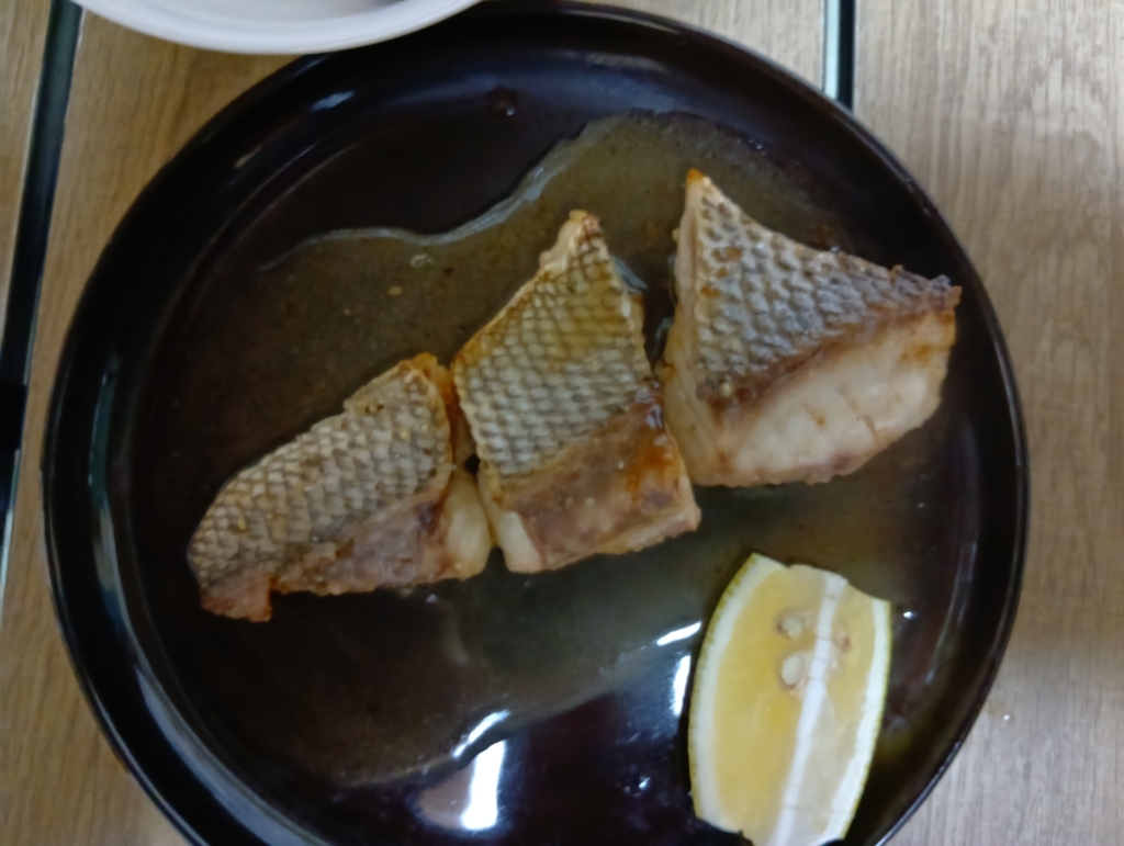 コショウダイの皮を細く切って茹でてポン酢で頂きました。