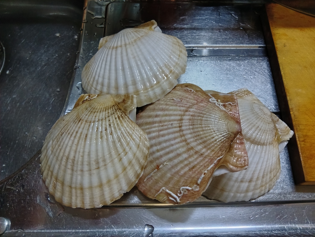 せっかくの殻付きホタテです。貝柱の他にもヒモやワタもアヒージョに使用します。