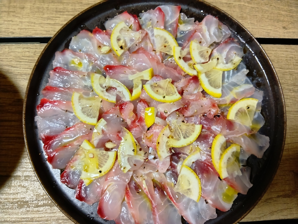 コショウダイのカルパッチョです。身がしっかりして旨味があるので、かなり美味しいです。