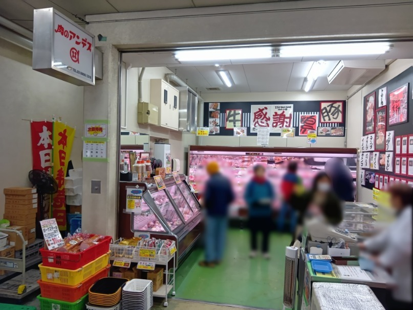 物販売場の入口にお肉屋さんがあります。