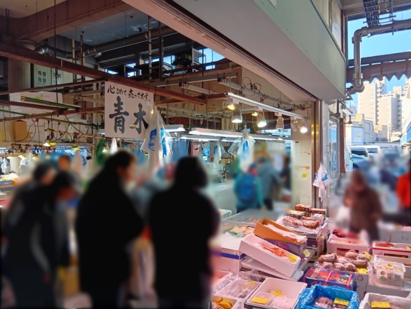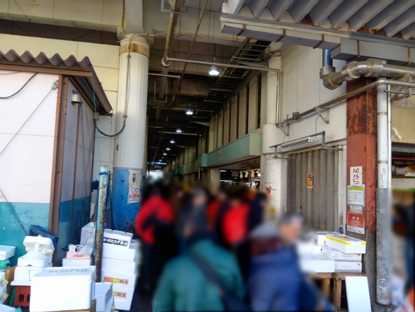 現在地の入口からだと、食堂→物販売場→仲卸売場の順にみて回ることになります。