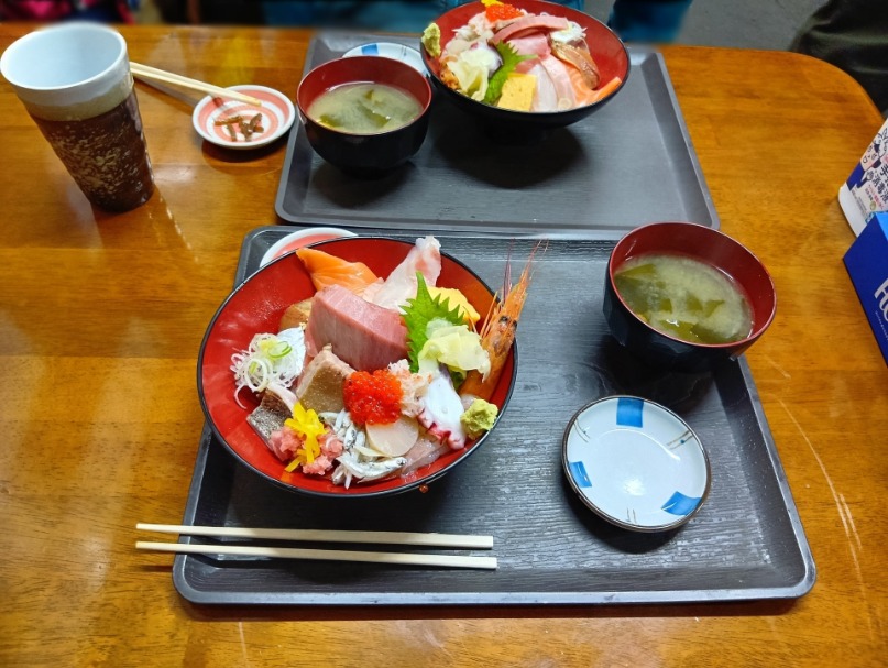 2. 最高の朝食体験!「花のや」などで新鮮な海鮮丼や定食を味わえます。