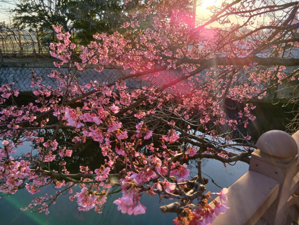 川沿いを歩くと、鮮やかなピンク色の寒緋桜が迎えてくれました。ソメイヨシノより一足早く咲くこの花を見ると、「あ、季節が動いているな」と実感します。
