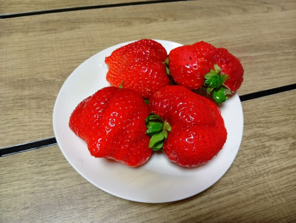 少し早めに市場に到着。青果の「島重」さんを覗くと、見事な大粒のイチゴが!