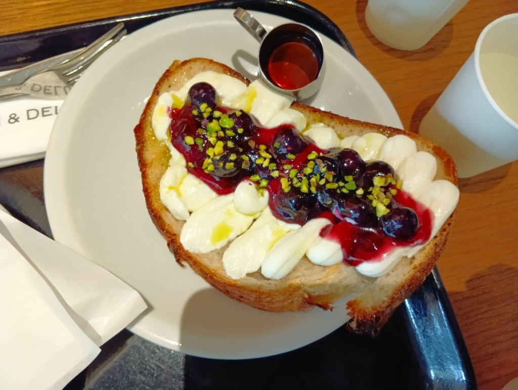 パンとリコッタチーズとブルーベリーがチョー良い感じです。