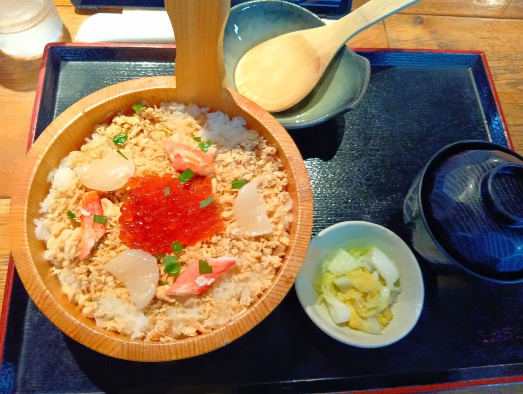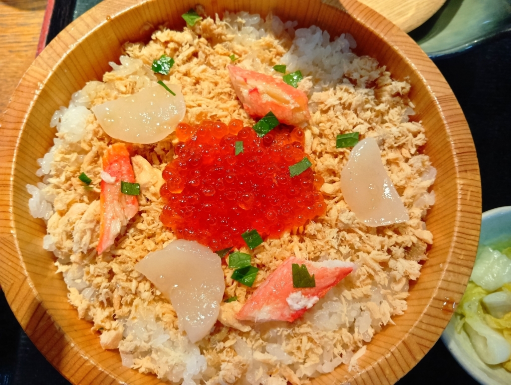 鮭のほぐし、ホタテ、カニ、いくら。良い感じです。