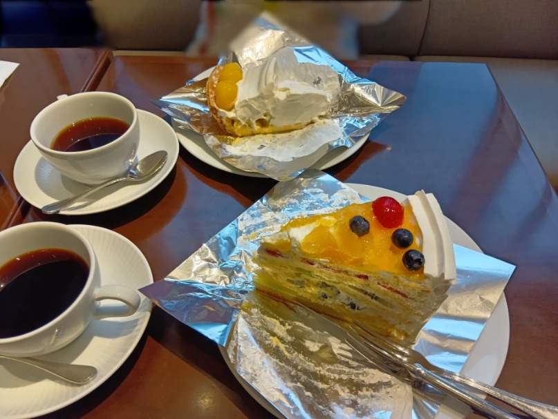おいしいコーヒーを飲みながらケーキを待ちます。