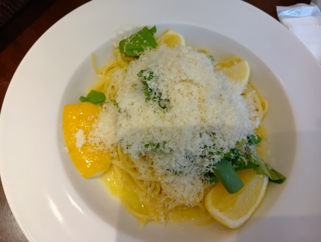 レモンとパルミジャーノのパスタ:レモンの香りが爽やかで、さっぱりといただけます🍋