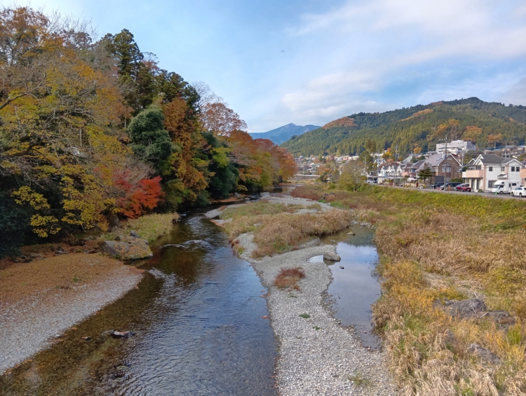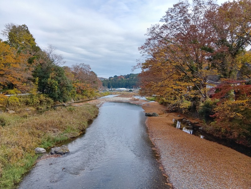 こちらは上流側。秋の澄んだ空気と川のせせらぎに癒されますね。