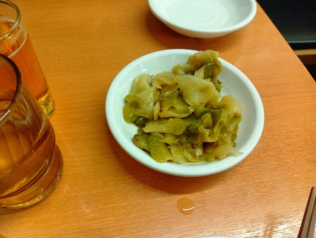 「あぁ〜、染みるね!」とお互い顔を見合わせてニヤリ。そこに外せない「ザーサイ」と「餃子」を追加し、ビールが空いたら迷わず「おかわり!」です。