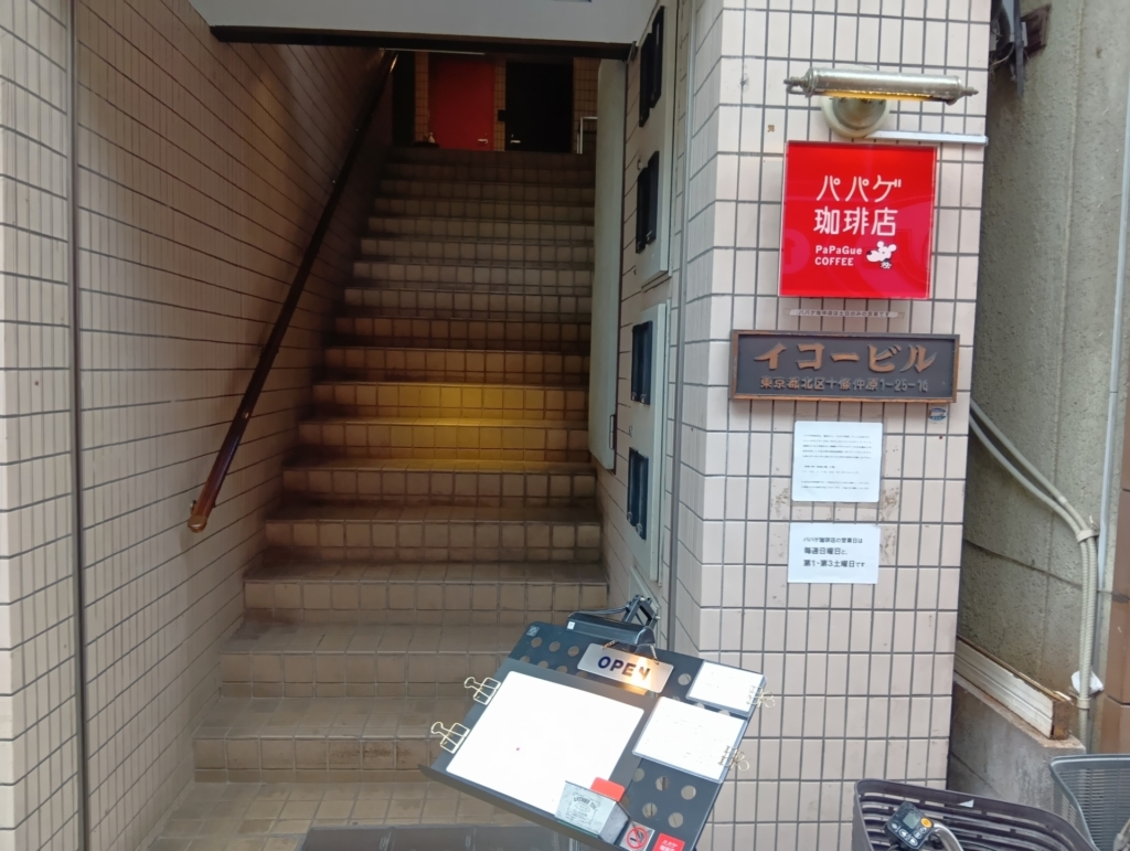商店街から少し入った建物の2階に位置するパパゲ珈琲店は、十条らしい活気から少し切り離された、落ち着いた大人の空間です。
